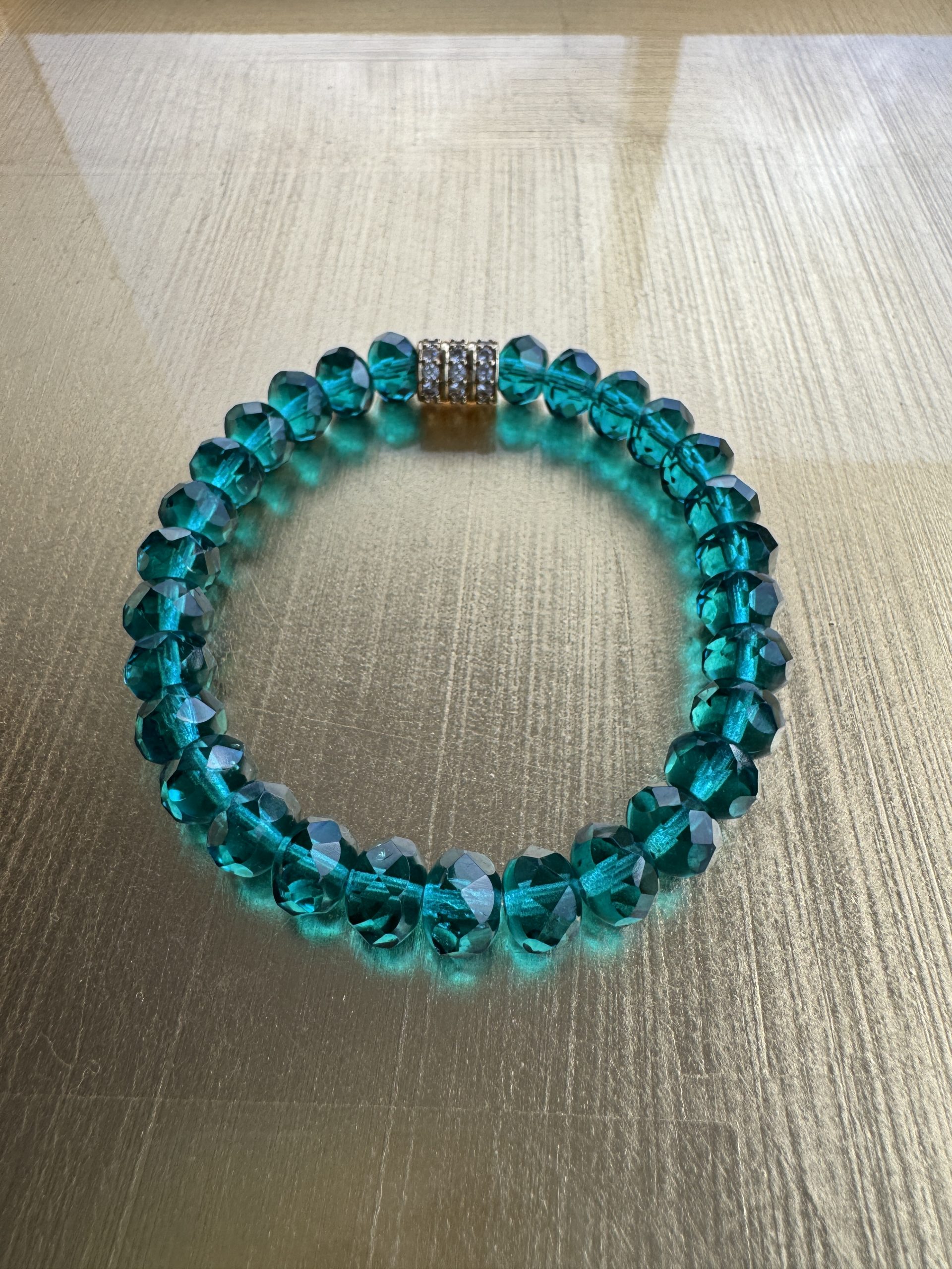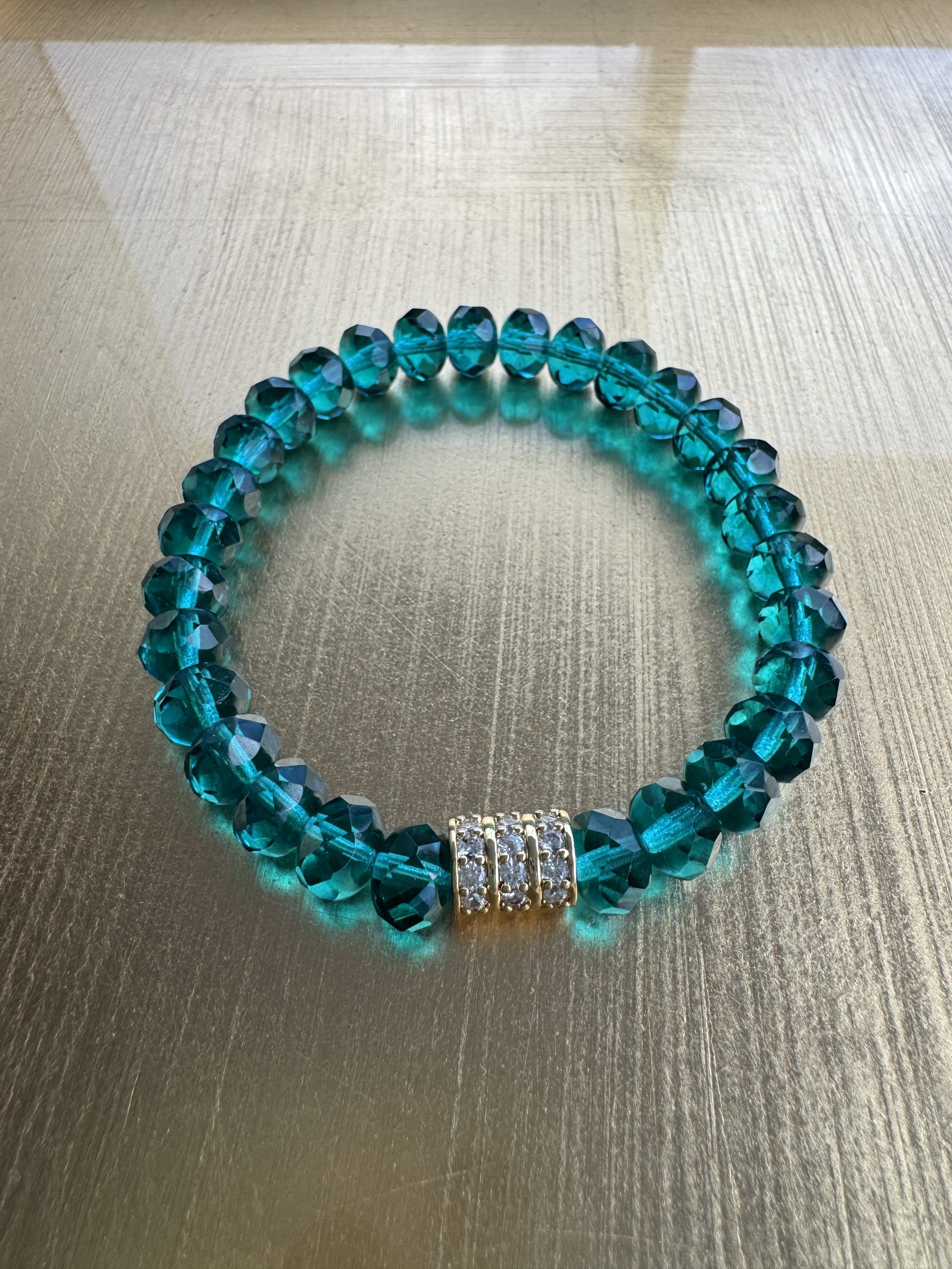 Sea green beads give this bracelet an extra edge and style. The gold center bead attracts attention and lends it an overall vibe of chic and elegance.