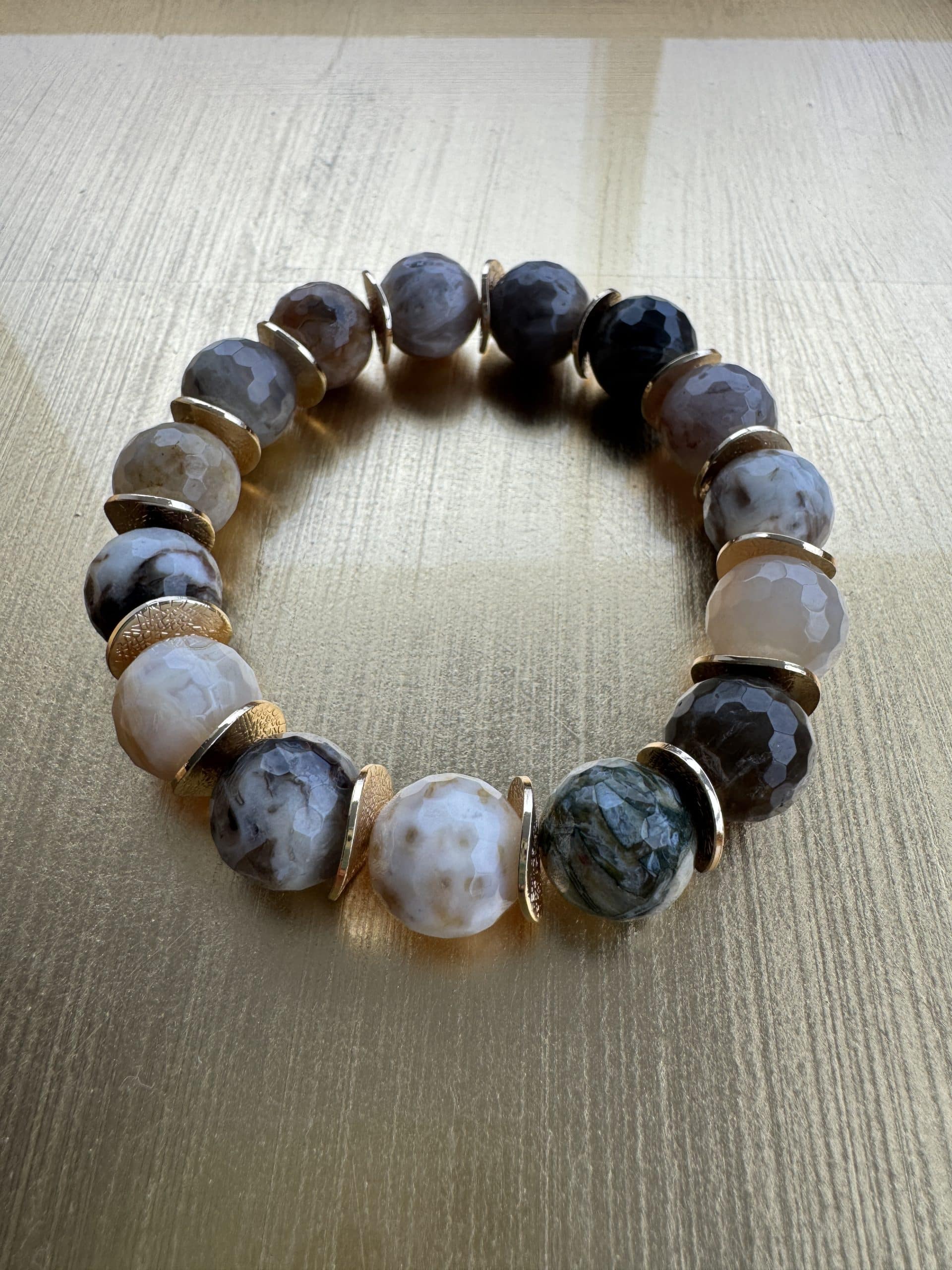 This bracelet captures the essence of an enchanted forest with its light-dark rustic looking faceted beads. The glow is completely breathtaking!